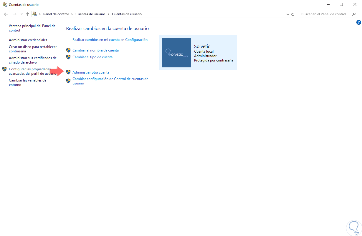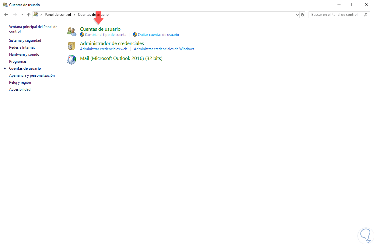 Otra de las alternativas a usar es a través del panel de control, para ello iremos a la siguiente ruta.