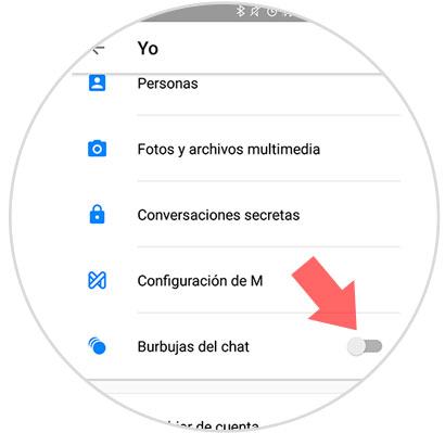 Una vez que has entrado en el menú, tienes que desplazarte hacia abajo para desactivar la opción que aparece “Burbujas de chat”.