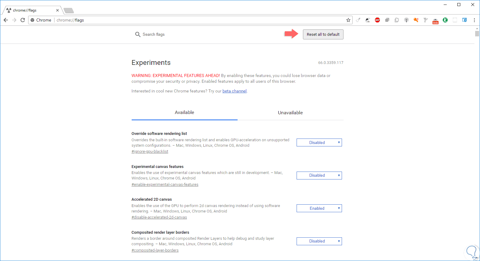 Otra de las opciones que tenemos consiste en resetear a sus valores por defecto la configuración del navegador y así permitir que todo su diseño funcione de la forma esperada.
