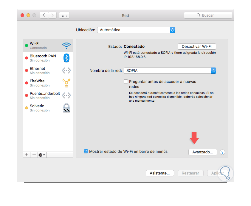 En la nueva ventana seleccionamos nuestra red actual y pulsamos en el botón “Avanzado”: