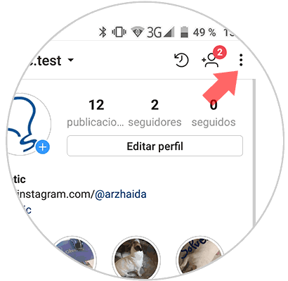 Lo primero que debes hacer es entrar en tu cuenta de Instagram y seleccionar el menú superior de los tres puntos.