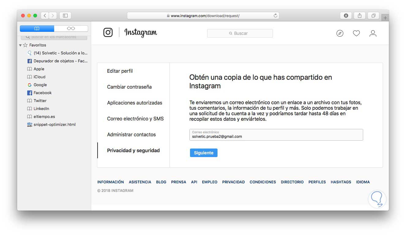 Es por ello que a continuación te mostramos de qué manera puedes descargar un archivo con todos los datos que has ido almacenando en tu cuenta incluidas todas las publicaciones.
