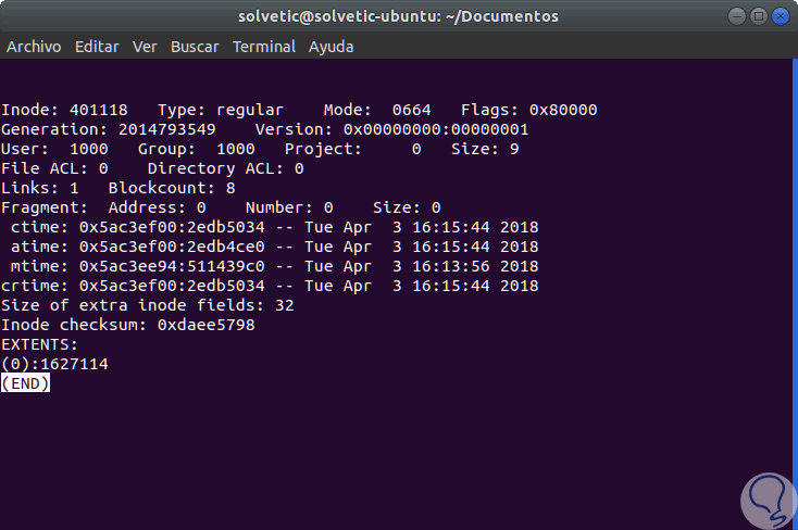 En ambientes Linux, contamos con el comando “stat” (Statistics) el cual, como su nombre lo indica, se encarga de mostrar el estado del sistema de archivos generando información útil como: