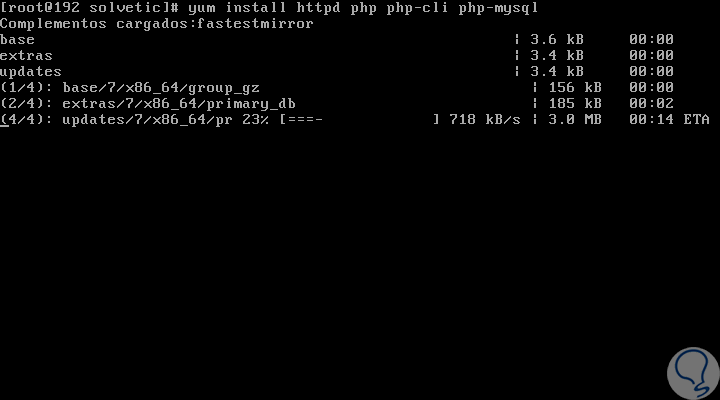 Instalar Apache con PHP: yum install httpd php php-cli php-mysql Instalar NGINX con PHP: yum install nginx php php-fpm php-cli php-mysql