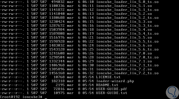 Luego, accederemos a la carpeta de ionCube y ejecutamos lo siguiente:
