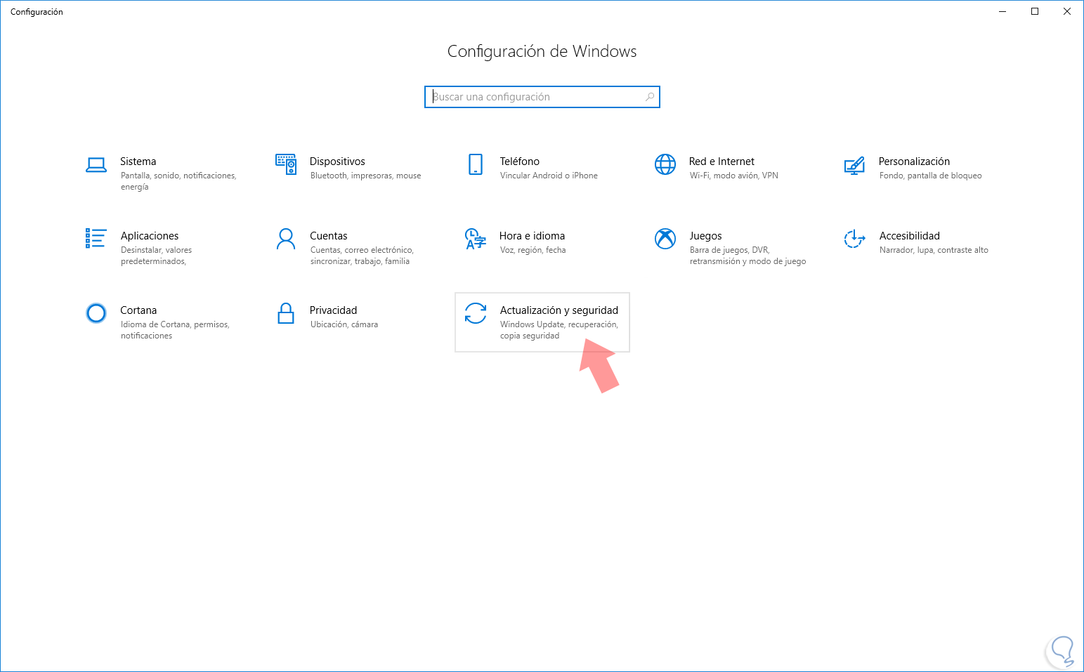 Allí vamos a la categoría "Actualización y seguridad" y pulsamos en el botón "Buscar actualizaciones" para que se de inicio a la búsqueda de nuevas versiones:
