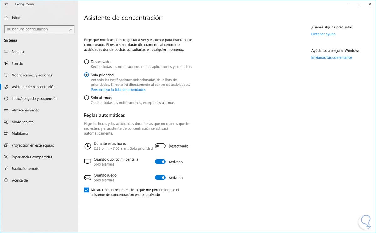 Windows 10 April 2018 cuenta con una nueva función llamada "Asistente de concentración" o "Focus Assist" la cual ha sido desarrollada para bloquear de forma fácil las notificaciones, los sonidos y las alertas con el objetivo de crear tiempos de trabajo sin distracciones.