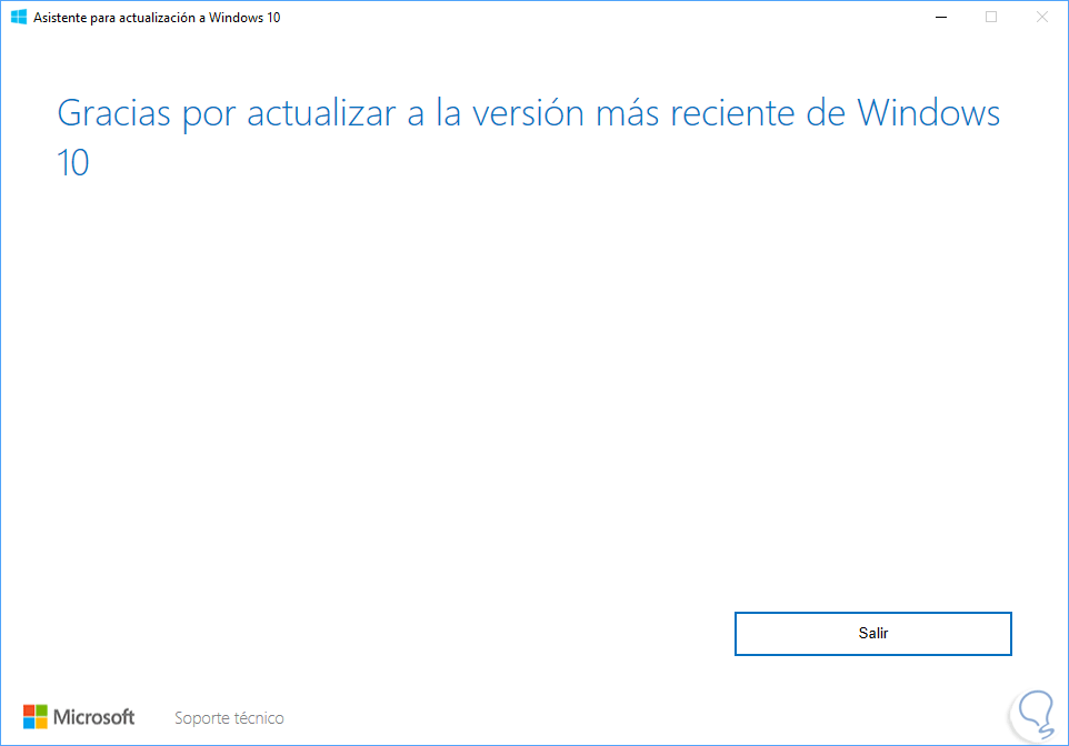 Cuando este haya finalizado veremos el siguiente mensaje: