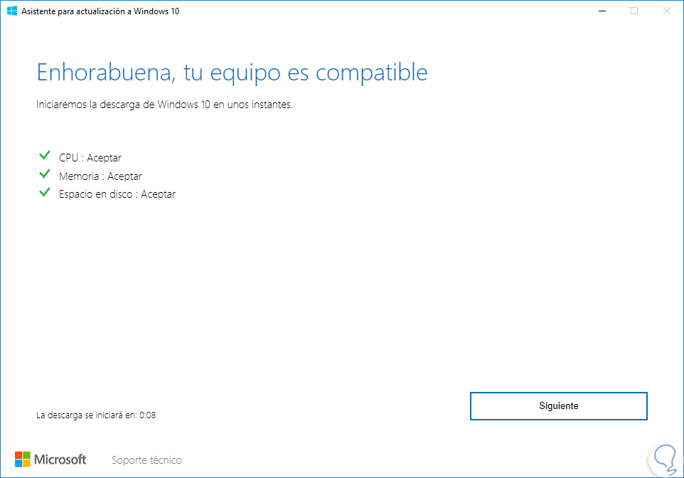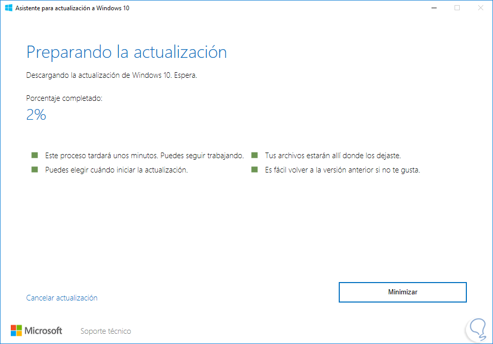 Una vez aprobados pulsamos en "Siguiente" podremos ver que inicia el proceso de descarga y actualización de Windows 10 April 2018 Update: