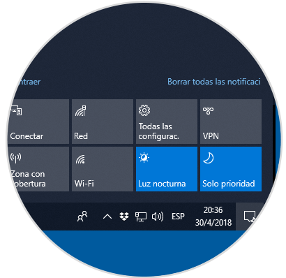 Podremos acceder a ella desde el centro de notificaciones en la barra de tareas: