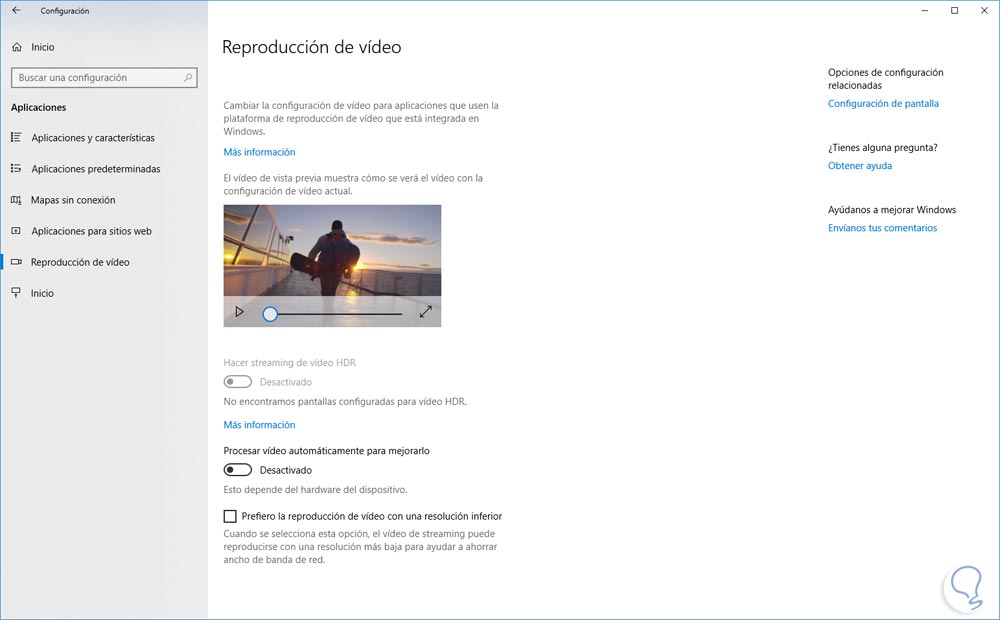 Allí activaremos el interruptor Hacer streaming de video HDR.