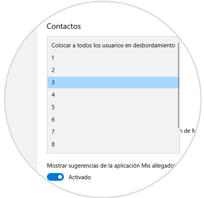 - Barra de tareas y allí, en la sección "Contactos", definir el número de usuarios: