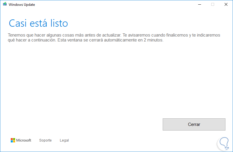 Cuando todo este proceso concluya, esto requiere reinicio del equipo, veremos el siguiente mensaje: