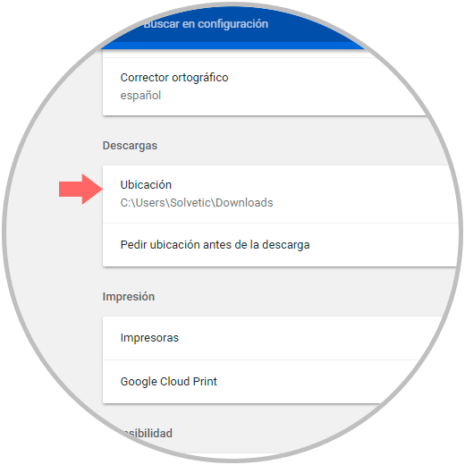 Configurar Google Chrome para cambiar carpeta de descargas por defecto