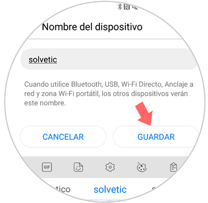 Ahora, en la barra, elimina el nombre por defecto y escribe el nombre que quieres que aparezca a la hora de ser encontrado por otros dispositivos. Cuando lo hagas pulsa en “Aceptar” y habrás terminado. Ya aparecerá el nombre del dipositivo que hayas establecido a la hora de ser buscado a través del Bluetooth.