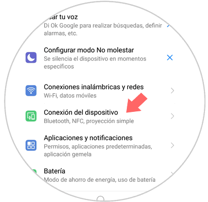 En el menú de ajustes desliza hasta la opción “Conexión del dispositivo” y pulsa aquí.