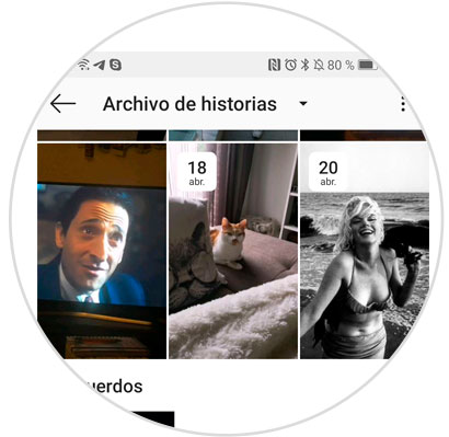 Aquí verás un mosaico con todas las historias que has ido publicando. Pulsa sobre la que quieres compartir en los estados de WhatsApp.