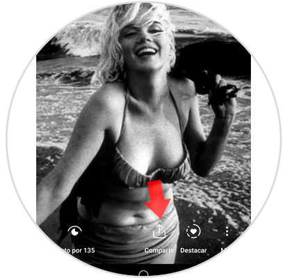 Debes entrar en la historia que quieres compartir desde Instagram. Pulsa en el símbolo de compartir.