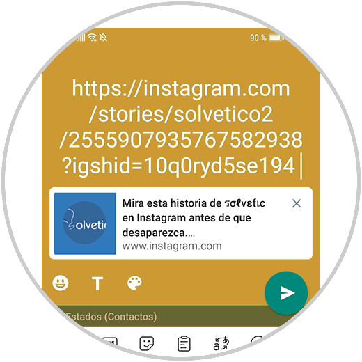 Por esto puede ser que cuando publiques una Historia en Instagram también desees compartir ese contenido a través de los Estados de WhatsApp y es por esto que hoy en Solvetic explicaremos cómo puedes hacer esto paso a paso. Tendrás que hacer lo siguiente: