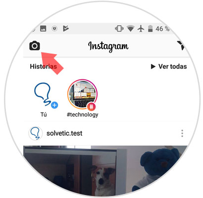 Una vez hayas accedido en la pantalla pulsa el icono de la cámara para realizar una historia en Instagram