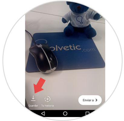 Haz la foto o el vídeo que quieras publicar añadiendo los efectos que más te gusten (hashtags, stickers, gifs…) y antes de pulsar en “Enviar a” para publicar en tu Historia pulsa en el botón “Guardar”. La historia se guardará en la memoria de tu teléfono antes de ser publicada.