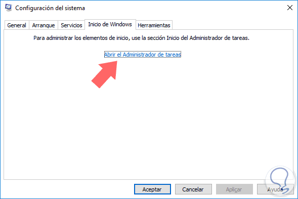 Una vez realizado esto, pulsamos en el botón Deshabilitar todos, ahora vamos a ir a la pestaña Inicio de Windows y allí damos clic en la línea Abrir el administrador de tareas: