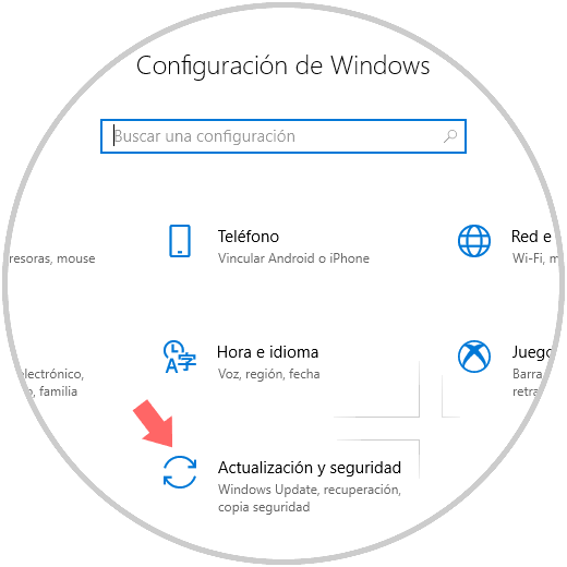 Para actualizar nuestro sistema, vamos al menú Inicio y allí seleccionamos Configuración, veremos lo siguiente: