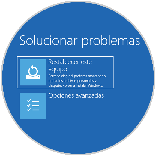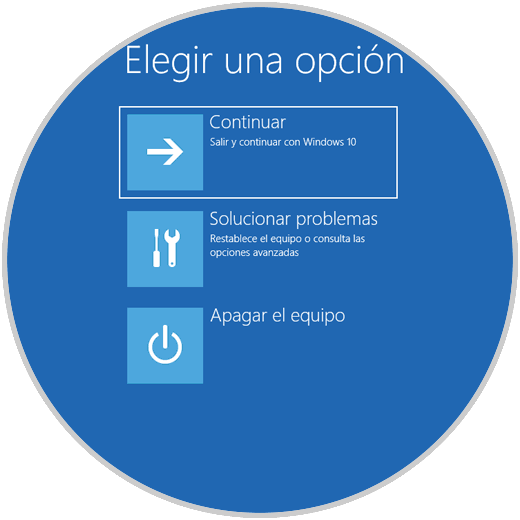 Para esto debemos reiniciar el equipo en el modo avanzado pulsando la tecla Shift y pulsar en el botón Reiniciar y será desplegado lo siguiente: