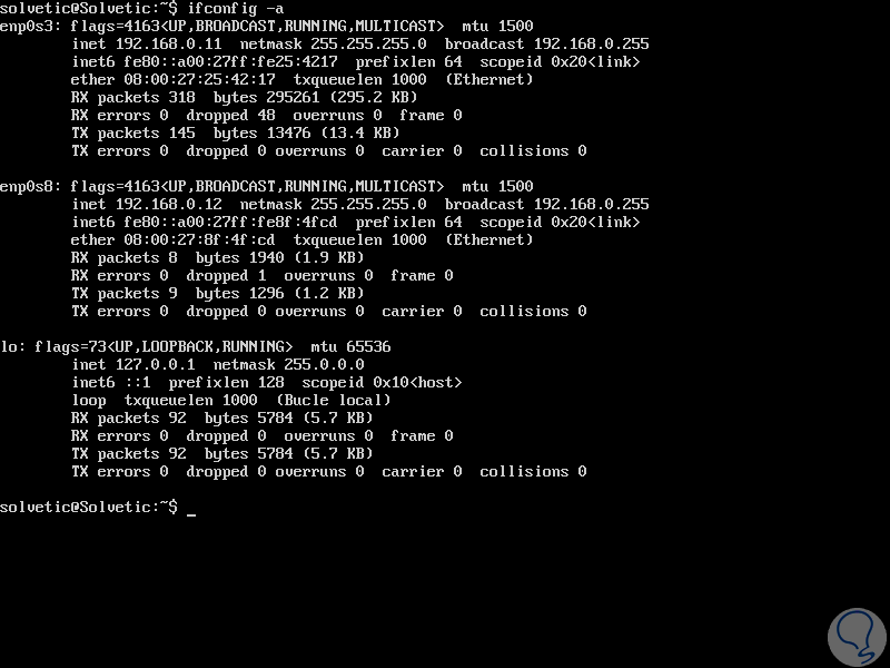Ahora vamos a configurar una dirección IP estática para la interfaz de red enp0s8.
