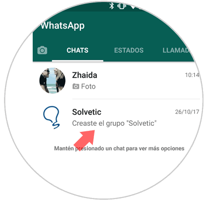 Entra en la aplicación de WhatsApp y una vez dentro pulsa en uno de los chats que tengas abiertos dentro.