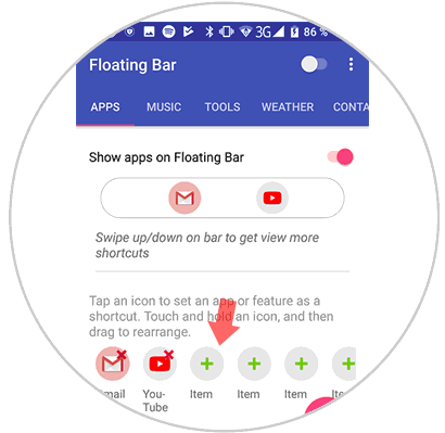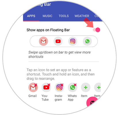 Una vez que hemos añadido esto, veremos una imagen previa en la parte superior. Debemos activar la pestaña de “Show apps on Floating bar”.