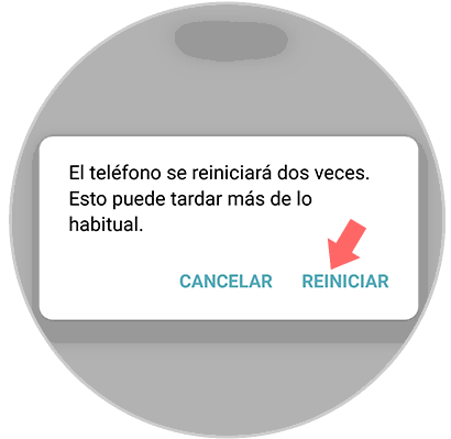 Finalmente veremos que en la pantalla aparece un mensaje en el que se nos informa de que el teléfono se reiniciará dos veces. Pulsamos en “Reiniciar” y comenzará el reseteo de nuestro LG G6.