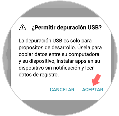 Por último, tenemos que permitir la depuración USB en nuestro teléfono. Tenemos que pulsar en el botón “Aceptar” y comenzará el proceso.