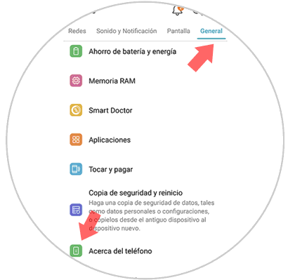 Una vez aquí, tienes que situarte en la pestaña “General” de la parte superior y seleccionar “Acerca del teléfono”.