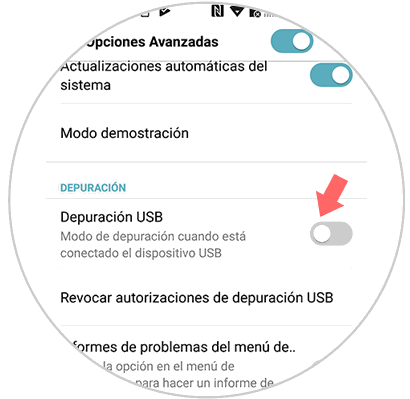 Ahora que ya tenemos las opciones de desarrollador activas, podemos continuar con el proceso y habilitar el modo depuración USB. Para ello debemos seguir los siguientes pasos.