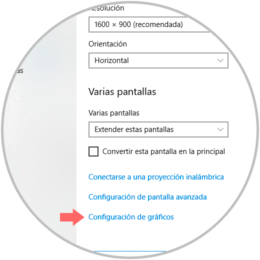 Damos clic en la categoría “Sistema” y en la nueva ventana vamos a la sección “Pantalla” y en la parte inferior damos clic en la línea “Configuración de gráficos”: