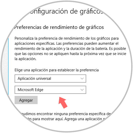 Así de simple es definir el nivel de uso de GPU para Microsoft Edge, u otras aplicaciones, en Windows 10 April 2018.