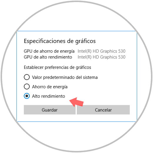 Al seleccionar esta opción estamos definiendo que al momento de usar Microsoft Edge será seleccionada la mejor alternativa de GPU y así sacaremos el máximo provecho a la interfaz gráfica. Una vez definida esta opción pulsamos en el botón “Guardar” para aplicar los cambios.