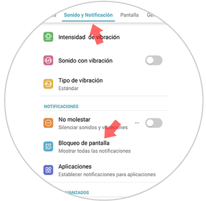 Una vez dentro, tienes que dirigirte dentro de la pestaña de “Sonido y notificación” debes seleccionar la opción de “Bloqueo de pantalla”.