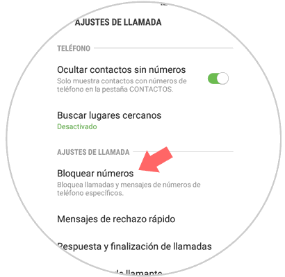 Ahora, en la nueva pantalla y en el apartado “Ajustes de llamada” verás la opción “Bloquear números”. Pulsa aquí