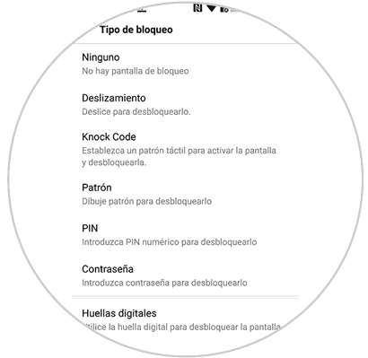 De esta forma vamos a configurar nuestro método de desbloqueo del teléfono.
