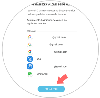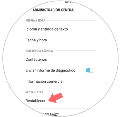 Aparecerás en una nueva pantalla. Entra en la opción “Restablecer” pulsando sobre ella.
