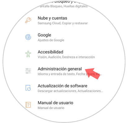 Ahora, dentro de ajustes, desliza hasta encontrar la opción “Administración general” y pulsa aquí.