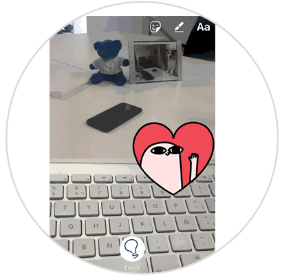 También podrás contestar con otra imagen que se encuentre en la galería de tu teléfono deslizando hacia arriba y eligiendo la imagen que desees. Por último, cabe la posibilidad de añadir texto, dibujar, y añadir stickers o pegatinas en los iconos de la esquina superior derecha de la pantalla. Pulsa en “Enviar” y enviarás la imagen superpuesta y editada.