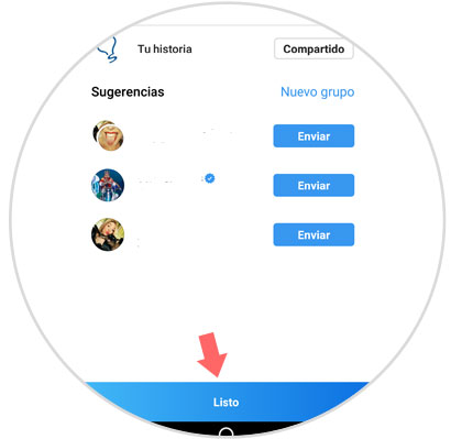 Cuando lo hayas hecho, selecciona la opción “Tu historia” para publicar la historia para todos y pulsa en “Listo” situado en la barra inferior de color azul.
