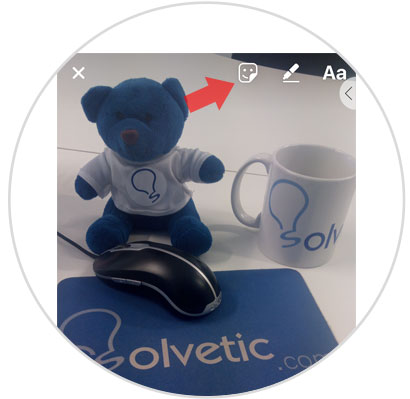 Ahora realiza una imagen o vídeo utilizando la cámara de la aplicación o desde la galería de tu teléfono, y una vez lo hayas hecho pulsa el icono de la cara sonriente situado en primera posición en la esquina superior derecha de la pantalla.
