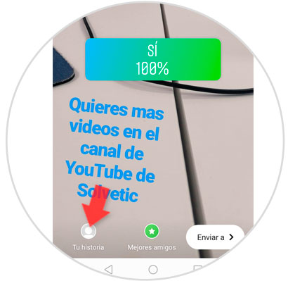Aquí, verás el resultado de la encuesta en forma de porcentaje en una gráfica. Pulsa en la parte inferior en la esquina inferior izquierda para publicar en Tu Historia y habrás terminado.