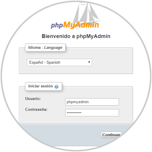 A continuación, definimos la base de datos para configurar phpMyAdmin: