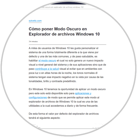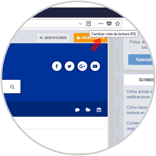 Para iniciar iremos al sitio web deseado y al momento de acceder a cualquier texto de él, podremos ver en la barra de dirección que se habilita el icono "Vista de lectura":