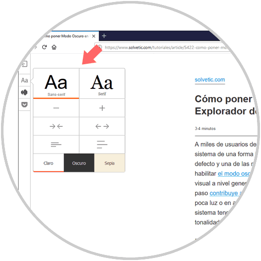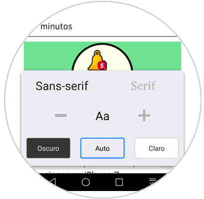 Si pulsamos en el icono inferior podremos acceder a la configuración de texto disponible para móviles. Allí podremos definir el tamaño de la fuente, así como su tema, oscuro, claro, etc.